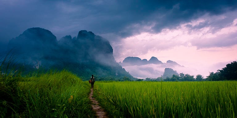 Adding a line to a photograph is one of the best ways to add depth and flow to an image. Although you should spend as much time as possible learning about all the elements of composition (just like serious painters do) using lines is one of the most important aspects and one of the main things I look for when I am out shooting. Lines can be found as highways, railroad tracks, and rivers, but can also be found in things you wouldn’t expect. The dirt path in the image below of the woman walking for example, or a crack in the ice of a frozen lake.