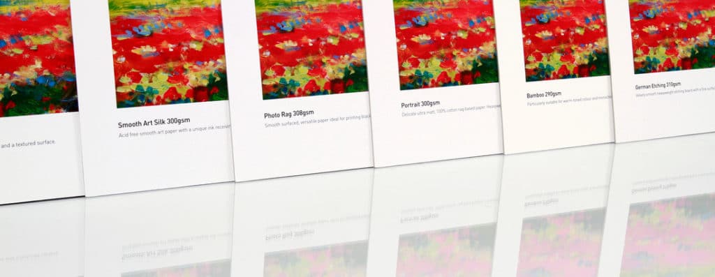 While there arguably isn’t ever a ‘right’ or ‘wrong’ paper for a given image, careful paper choice can help bring out the qualities in the image you’re looking highlight. For example, you may want the warm tones in your abstract landscape photo to shine through on a smoothly textured surface – in which case Bamboo would be a good choice. Or perhaps you’re looking to showcase your prize portrait study in a painterly way with truer-to-life colours – in which case a more heavily textured paper like Portrait or German Etching would be more suitable.