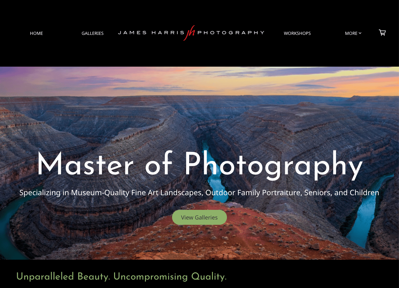 Whether you already have a landscape photography website or are building one from scratch, it’s always worthwhile to look at other inspiring portfolios and get ideas for your own. As a best practice, we recommend reviewing your site at least 1-2 times each year to see what content or design might need to be refreshed. We’ve done the hard part for you by collecting artistic landscape photography portfolio examples that you can click through for inspiration; you’re sure to find some fresh ideas for how you can design your own.