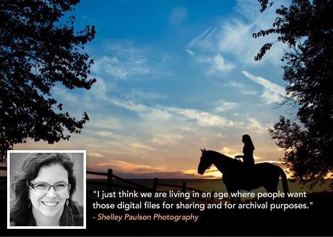 If you only offer prints for sale, those photos will not be seen by the masses. Digital files can be easily shared on the Internet through social media, email and blogs, resulting in many more eyes seeing your photos. This also doubles as advertising for your business, so the photos pay for themselves. “I think we are living in an age where people want those digital files for sharing and for archival purposes,” says Paulson.