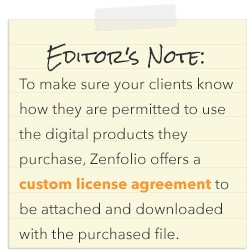 Because purchasing a digital file is more of a one-and-done transaction where people don’t have to purchase multiple copies, you can and should crank up the price. Peerenboom charges digital files at one flat rate. “It costs more for the digital file than the print but they can be printed as many times as they like forever,” she says.
