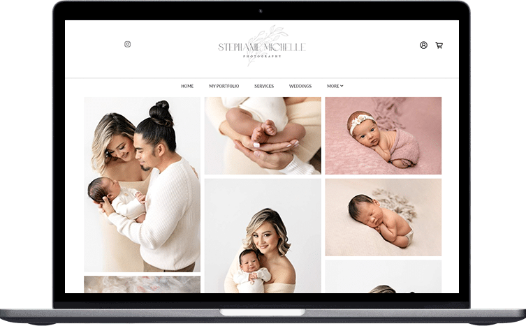 Whether you already have a newborn photography website or are building one from scratch, it’s always worthwhile to look at other inspiring portfolios and get ideas for your own. As a best practice, we recommend reviewing your site at least 1-2 times each year to see what content or design might need to be refreshed. We’ve done the hard part for you by collecting timeless and modern newborn photography portfolio examples that you can click through for inspiration; you’re sure to find some fresh ideas for how you can design your own.